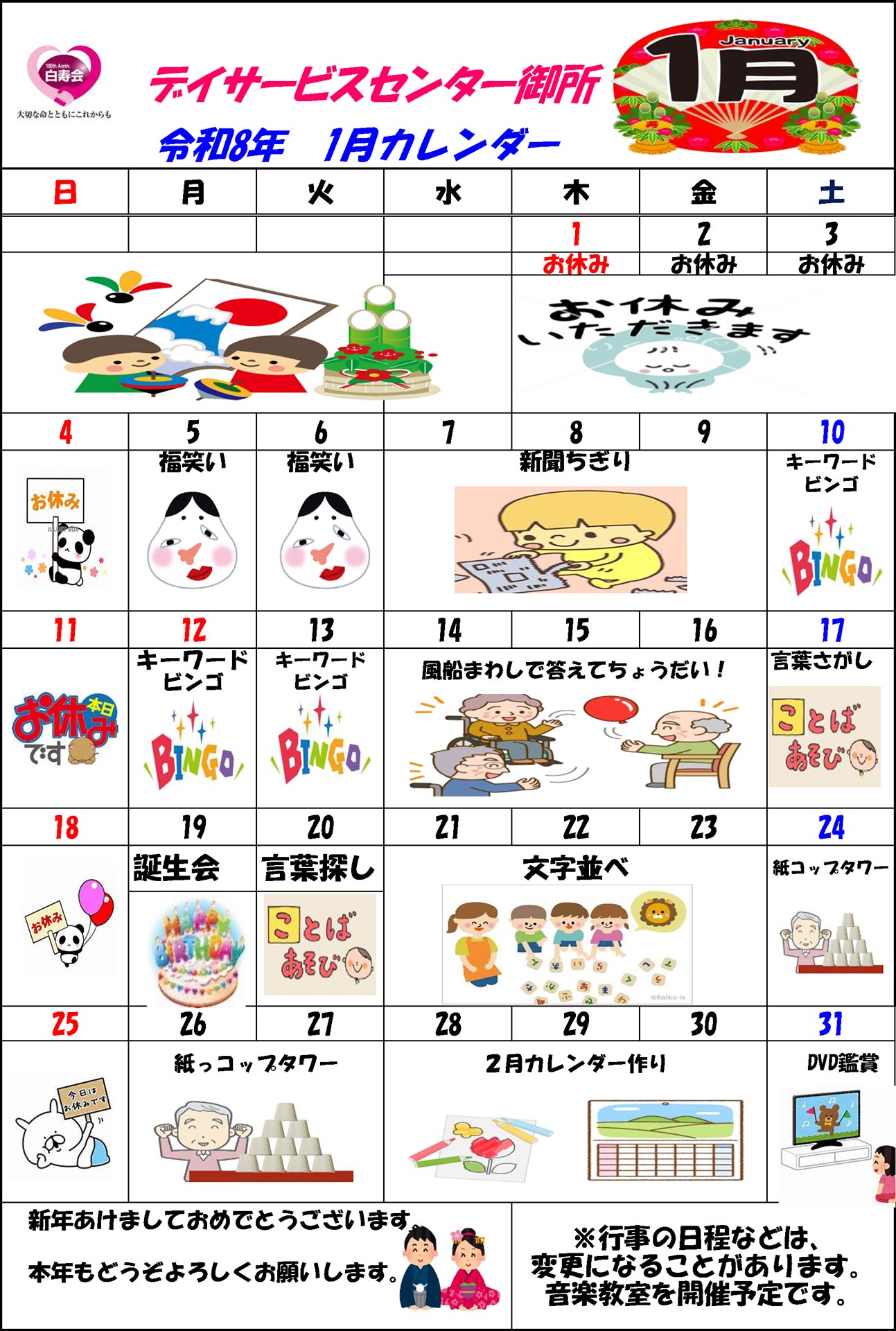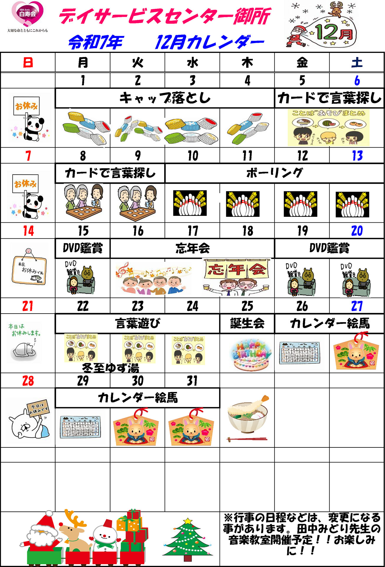 - 日帰り介護施設で食事・入浴機能訓練などのサービスを行います。
